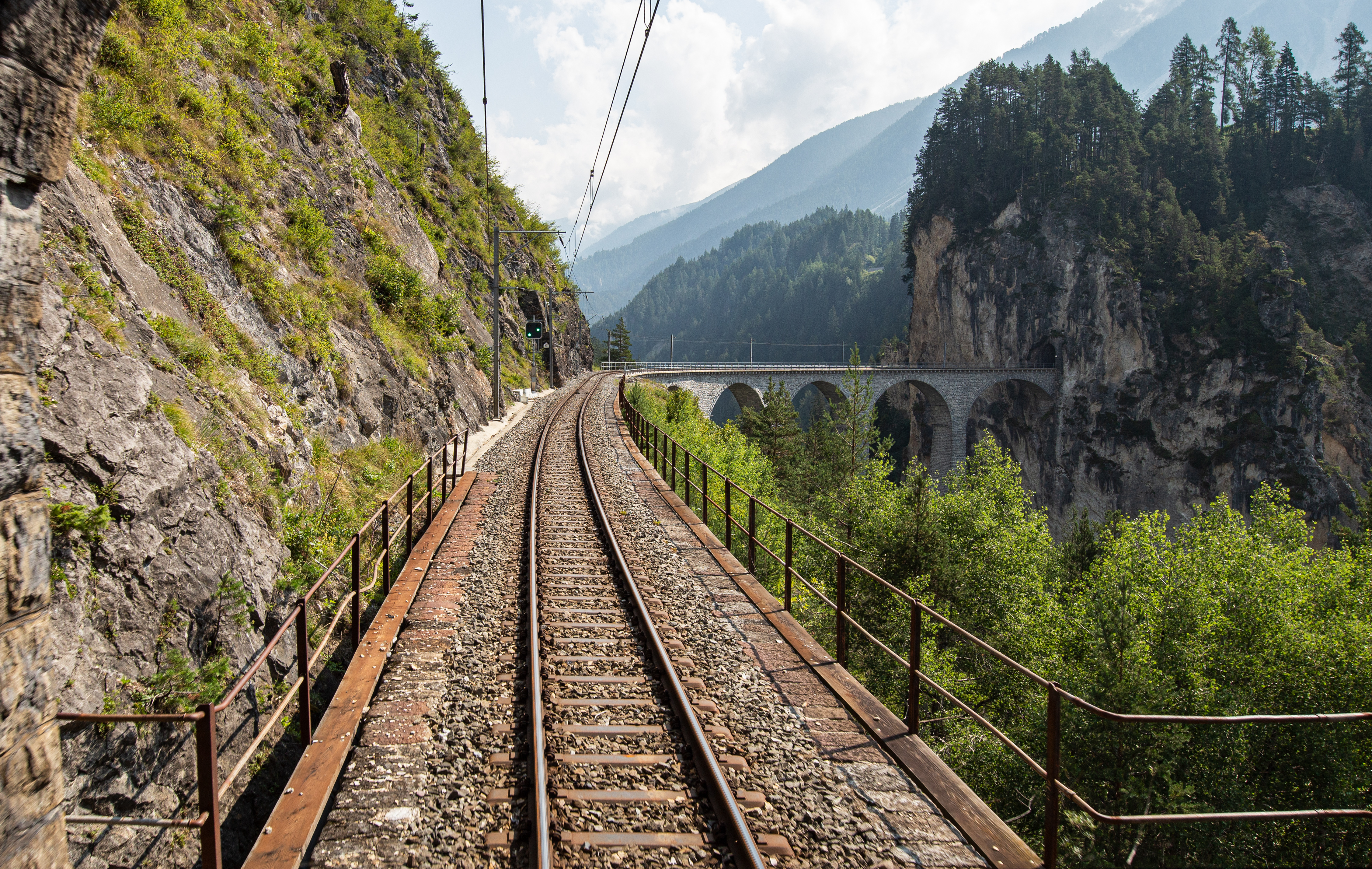Die Rhätische Bahn (RhB) und die Firma Livesystems warten mit einer Neuheit auf. Was man aus Flugzeugen kennt, gibt es jetzt auch auf der Schiene: Reisende haben auf der Albulalinie von St. Moritz nach Chur den gleichen Ausblick wie der Lokführer. Möglich macht dies eine am Steuerwagen montierte Kamera, welche ihre Aufnahmen direkt auf die Bildschirme im Zug überträgt.