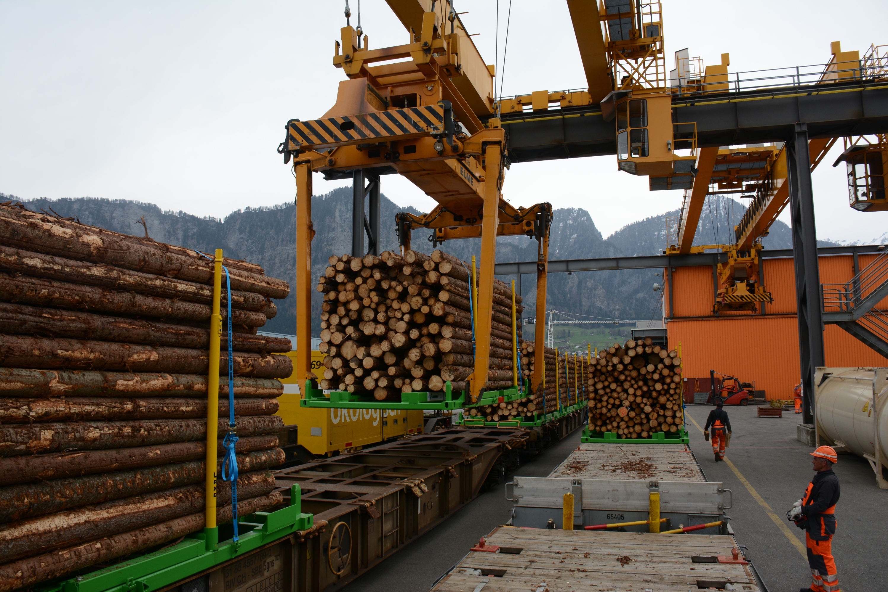 Neuheit in der Schweiz: Rundholztransporte im Kombiverkehr