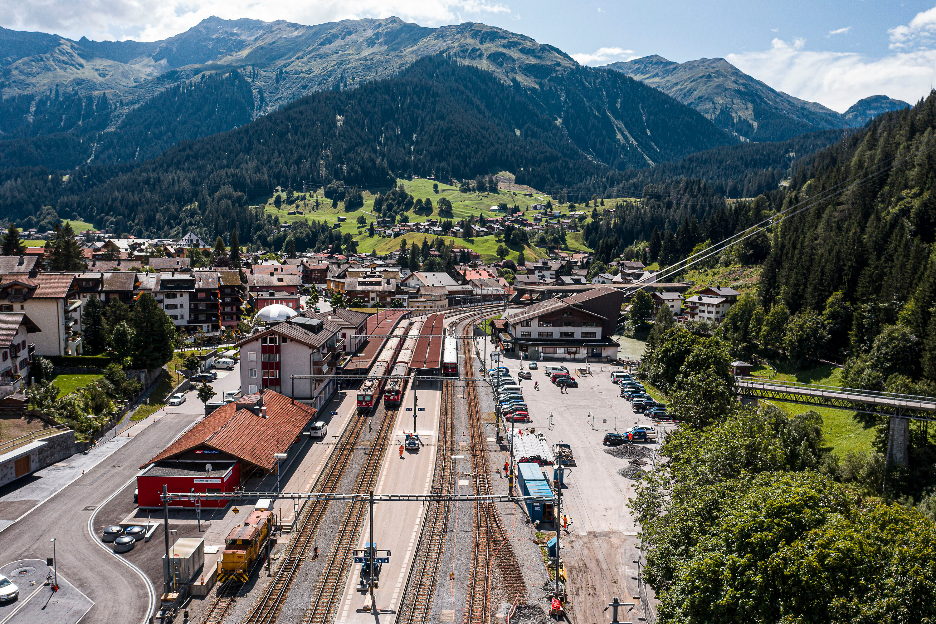 Prüfung Erweiterung Bahnanlage Seite Gotschna und Anbindung Bahnhof Die starke Zunahme der Frequenzen im Prättigau in den letzten zwei Jahren fordert aktuell die RhB. Aus langfristigen Kapazitäts- und Produktionsgründen (2035-2040) prüft nun die RhB, ob am Bahnhof Klosters Platz eine vierte Perronkante auf der Seite Gotschna geplant werden kann. Bis Ende Jahr sollen weitere Erkenntnisse vorliegen. Die Arbeiten werden in enger Abstimmung mit den Bergbahnen und der Gemeinde geführt. Dabei sollen die Bedürfnisse der Bergbahn im gleichen Zeithorizont ebenfalls möglichst integriert werden. Aufgrund der attraktiven Lage plant auch die RhB Immobilien AG weiterhin langfristig die Option, einen Beherbergungsbetrieb zu ermöglichen. Der aktuelle Fokus der Entwicklung liegt derzeit beim Bahnhofareal.